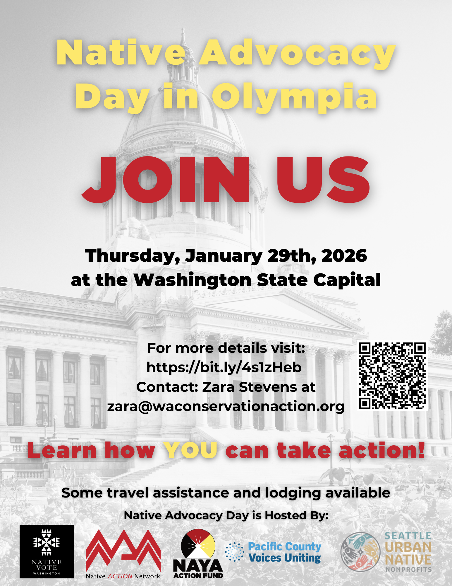 Join us for an in-person Native Advocacy Day 2026 on Thursday, January 29th in Olympia from 9 a.m. to 3 p.m. Gain skills to become a persuasive constituent. Connect with other Indigenous activists! Registration closes January 15.