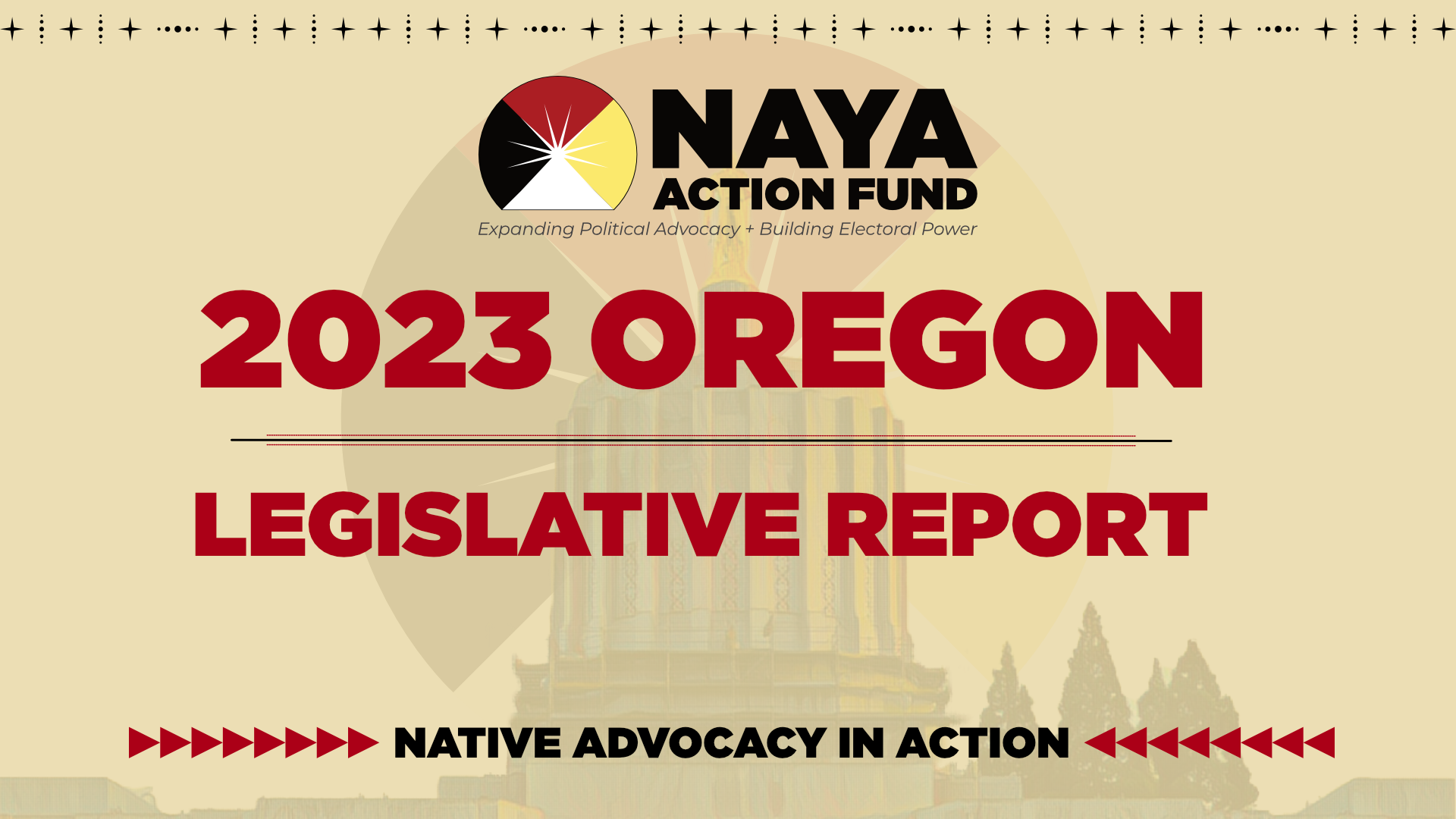 On June 25, 2023, the Oregon State Legislature adjourned sine die the 2023 legislative session, concluding a long and turbulent 160-day legislative session. In partnership with NAYA Action Fund, the NAYA Family Center adopted a comprehensive legislative agenda. Alongside our coalition partners, we successfully secured programs and funding for our community's health, safety, growth, and prosperity.